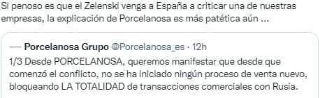 De hecho, la multinacional cerámica de Vila-real, en las últimas horas incluso ha tenido que justificarse y defenderse en la red ante comentarios de quienes cuestionaban su ética alegando que seguían con sus negocios «en el país invasor».