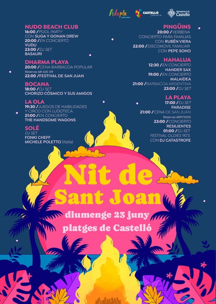 La Asociación de Empresarios y Entidades Deportivas Playas de Castellón (Adepla) ha querido sumarse a la celebración de la noche de Sant Joan, la más mágica del año, ofreciendo actividades lúdicas y musicales que se conjugan con las propuestas tradicionales y la programación prevista desde el ayuntamiento.