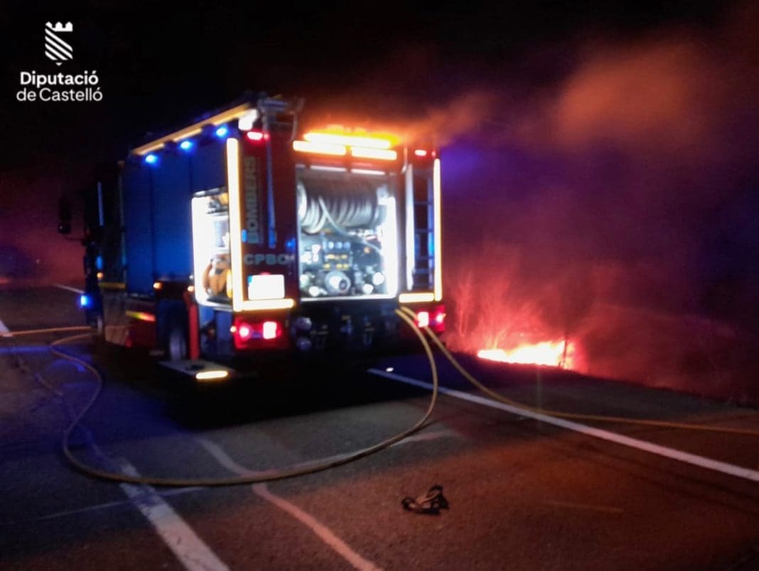 Hasta allí el Consorcio ha movilizado dos dotaciones de bomberos de Plana Alta y Baix Maestrat, que se han centrado en el incendio del camión, mientras que una unidad de bomberos forestales de GVA ha extinguido el incendio de vegetación aledaño.
