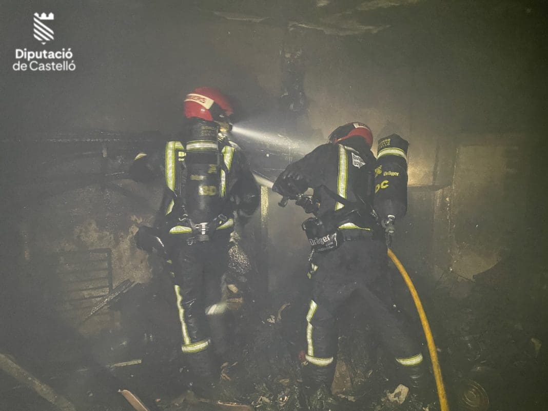 Efectivos del Consorcio Provincial de Bomberos de los parques de la Plana Baixa y de l’Alcalaten han intervenido durante la madrugada en la extinción del fuego.