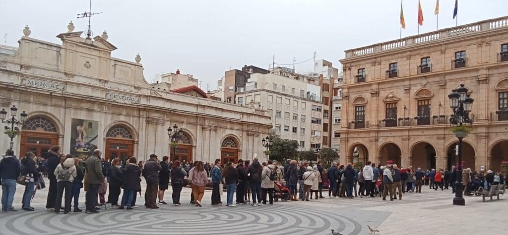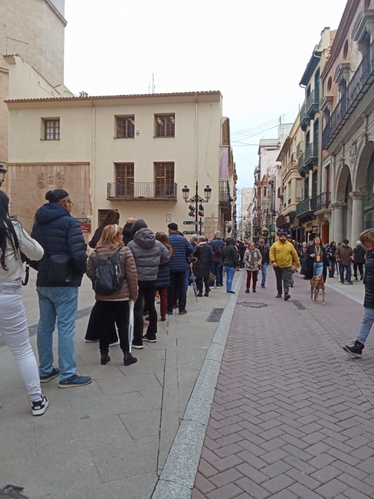 También del mismo modo, que en la plaza mayor, donde la reina de las fiestas, Paula Torres Claramonte, presidía una de las mesas de reparto con la mejor de sus sonrisas, también en las tenencias de alcaldías del resto de distritos, se han formando las mismas imágenes de las colas, bastaba acercarse por ejemplo a la situada en el ‘maset blau’.