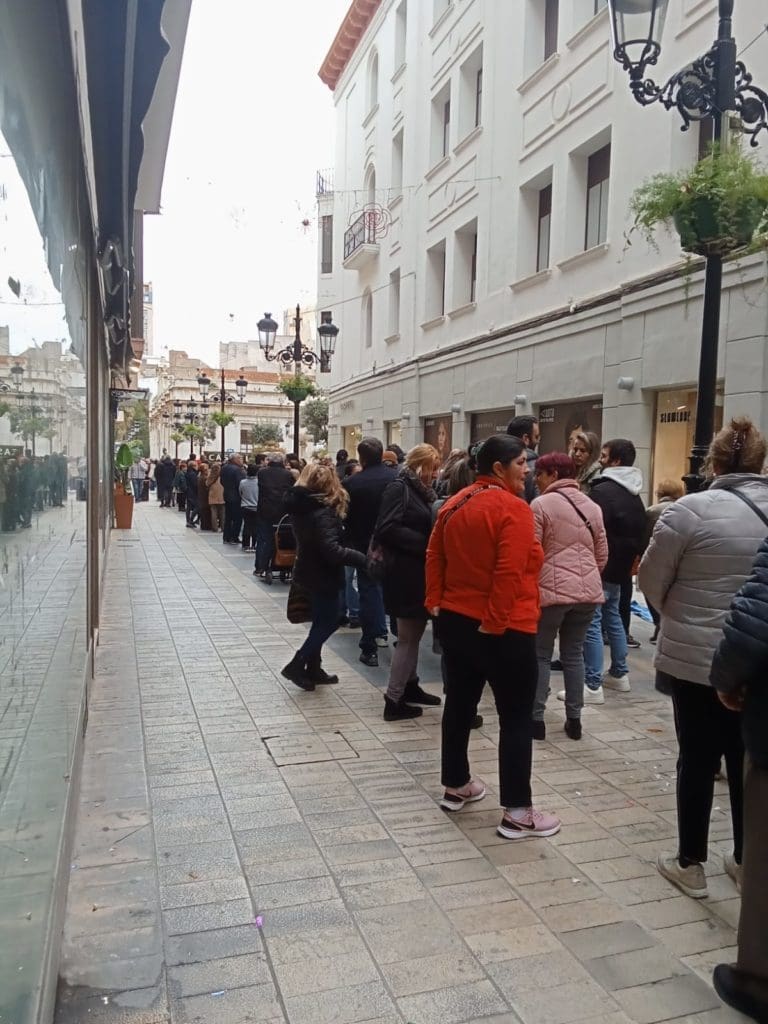 Como siempre, mucho antes de las once de la mañana, hora oficial del inicio del reparto, ya se han ido formando hileras de gente que apenas diez minutos después del arranque del reparto daban toda la vuelta a la plaza y llenaban las distintas calles adyacentes.