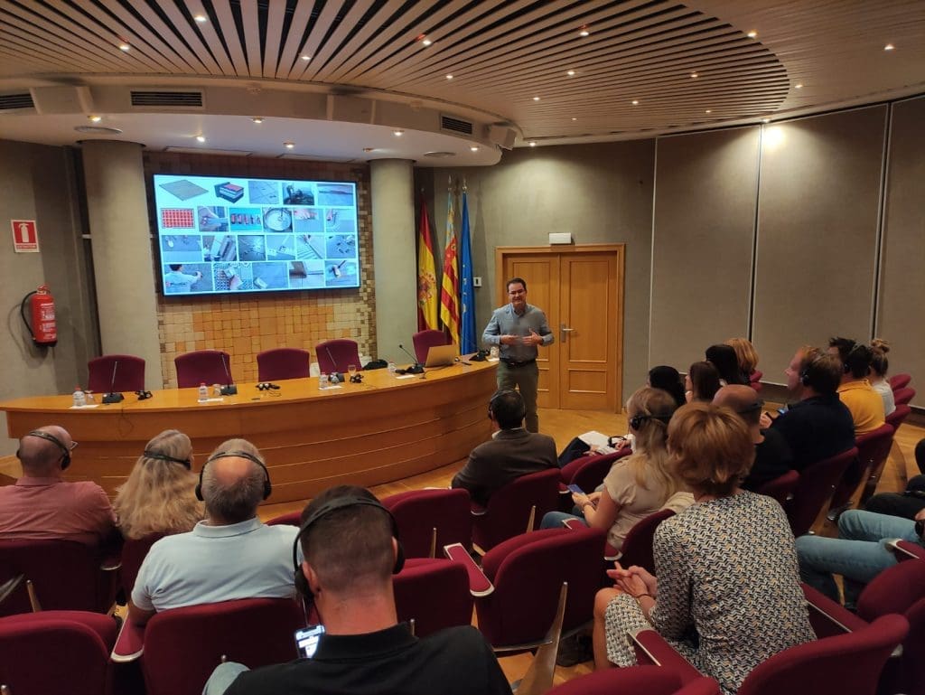 Como introducción, el grupo participó este lunes en una jornada en la sede de ASCER en la que además de conocer la estructura y principales datos de la industria, recibieron charlas a cargo de Matías Martínez (Proalso), sobre la importancia de la formación del profesional colocador para adaptarse a los nuevos formatos y usos de la cerámica.
