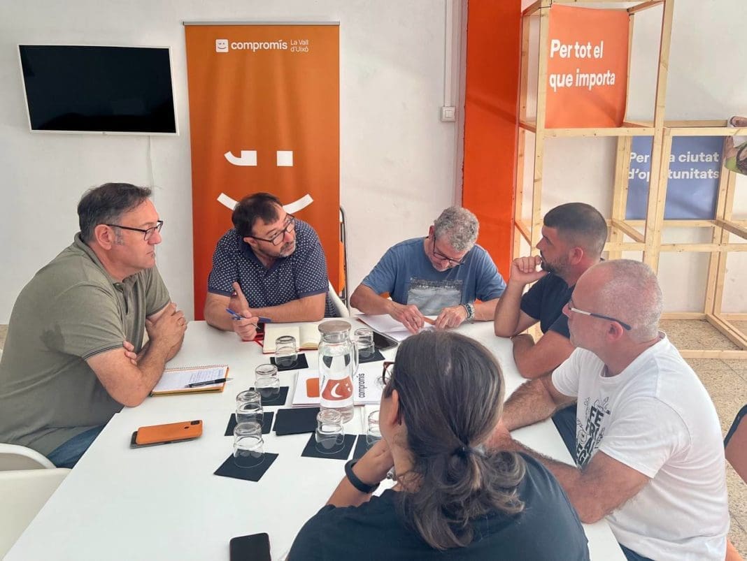 El portavoz de Compromís a la Diputación de Castelló, David Guardiola, el regidor de La Vall d’Uixó, Fernando Darós y la representante del colectivo de Compromís por Moncofa, Patri Delegido, se han reunido con miembros de La Unió Llauradora del País Valencià; Carles Peris, Secretario general, Joanma Mesado, secretario técnico y David Esteban, secretario comarcal de La Unió en la Plana Baixa.