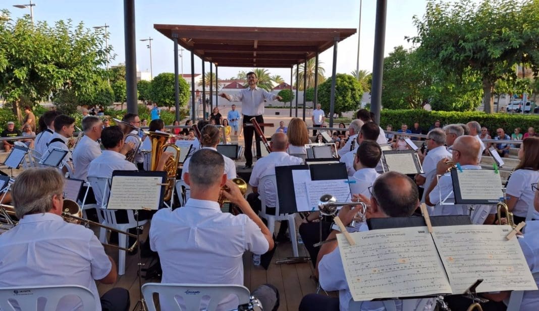 Andrés Valero-Castells ha dirigido por primera a la Banda Municipal de Castelló con un programa, ‘Concert per a dos reines’, en el que ha incluido obras de compositores españoles contemporáneos. Este concierto ha tenido lugar este viernes en el Templet del Muelle de Costa en el Grau de Castelló, para rendir homenaje a las Reinas de las Fiestas de la Magdalena 2024.