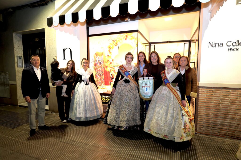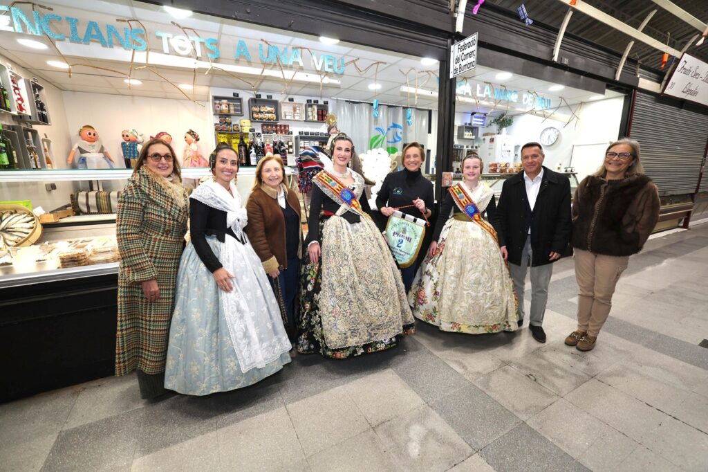 El alcalde, Jorge Monferrer Daudí, acompañado por las Reinas Falleras 2026, Laura Sendra y Ana Olivas, junto a sus Damas de la Ciudad y Cortes de Honor, ha visitado los establecimientos participantes para hacer entrega de los banderines acreditativos a los ganadores. En el acto también han participado la presidenta de la Junta Local Fallera y concejala de Fallas, Paloma Boix, y la concejala de Comercio, Suni Fandos.
