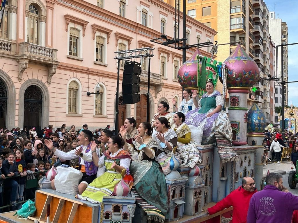 Con la participación de veintitrés carrozas en las que iban la Federació de Colles, los representantes de todas las comisiones de sector, así como Na Violant, María Rodríguez, y las reinas de las fiestas infantiles, Lourdes Climent y Vega Torrejón, la Avenida del Rey don Jaime se ha convertido en el punto de partida donde miles de asistentes han disfrutado de una jornada llena de color, diversión y muchas risas.