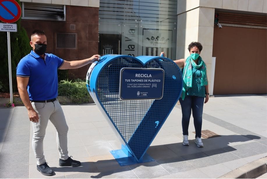 Onda instala tres corazones para recoger tapones de plástico y reciclarlos en mobiliario urbano
