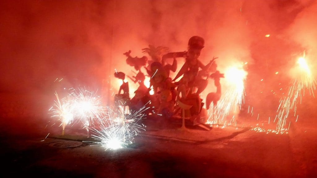 El fuego ha tomado protagonismo a partir de las 19:00 h, momento en que se ha encendido la primera falla del municipio: el monumento de la falla inclusiva de AFDEM.