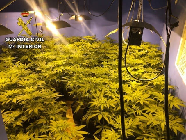 Sospechando que la vivienda fuera desvalijada fue acompañado por los guardias civiles para realizar un reconocimiento del interior de la misma. Tras acceder al interior del inmueble, los agentes actuantes observaron que la vivienda estaba siendo utilizada para la elaboración y cultivo de marihuana, hallando más de 150 plantas en fase de crecimiento y floración.