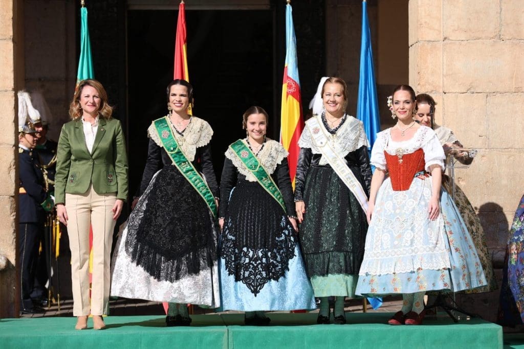 La alcaldesa, Begoña Carrasco, junto a la concejala de Fiestas, Noelia Selma ha recibido este sábado a las Reinas de las fiestas, Lourdes Climent y Vega Torrejón, acompañadas por las damas de la ciudad y damas de la ciudad infantiles, madrinas, presidentes infantiles y presidentes de los diferentes sectores de la ciudad; pregoneros, representantes de la Junta de Fiestas, de entes vinculados y diferentes asociaciones festeras; como la Bella del Foc de Alicante, Belén Mora y Bellea Infantil, Inés Llavador; Damas de la Huerta de Murcia y de la Casa de la Comunidad Valenciana en Zaragoza en la recepción de las delegaciones invitadas que se ha celebrado en la plaza Mayor.