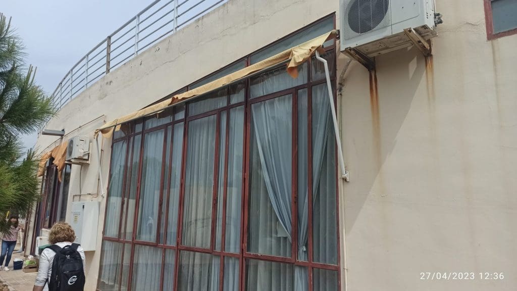 Unas dependencias que, debido al mal estado en que se encuentran los toldos ubicados en el exterior de la instalación y a la falta de un sistema de ventilación adecuado, superan en verano los 40 grados de temperatura cuando, según el Real Decreto 486/1997 de Seguridad y Salud en los Lugares de Trabajo, deberían estar entre los 14 y los 25 grados, además de tener una humedad relativa comprendida entre el 30 y el 70%.