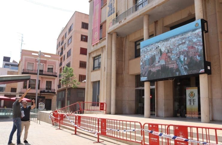 Se desprenden unas losas de la fachada del Ayuntamiento de Vila-real por el paso del tiempo y el calor