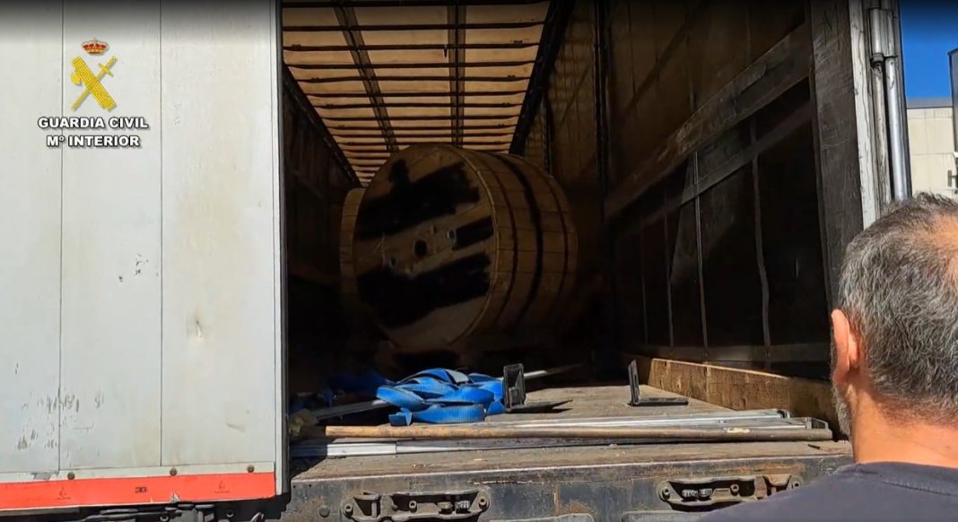 En el interior del semirremolque se encontraron ocho bobinas de cobre, cada una con un peso aproximado de más de dos toneladas.