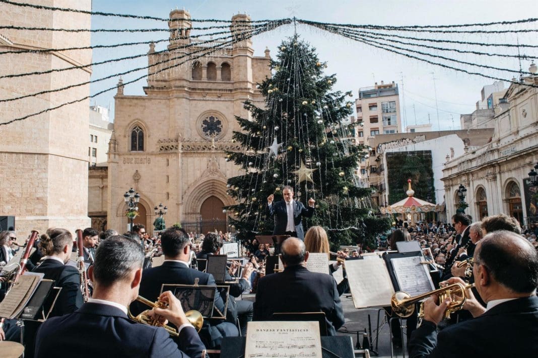 A las 12 horas del mediodía, en la Plaza Mayor, ha comenzado el concierto conmemorativo de la Banda Municipal de Castellón, bajo la batuta de su director José Vicente Ramón Segarra.
