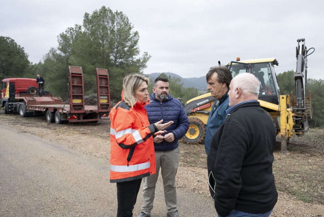 La presidenta de la institución provincial, Marta Barrachina, junto al diputado del Consorcio Provincial de Bomberos y de Caminos Rurales, David Vicente, ha visitado este miércoles los trabajos que se están llevando a cabo en el Pla de Meanes de Atzeneta del Maestrat para abrir la accesibilidad de Mas Blanc que ha quedado incomunicado por las precipitaciones registradas.