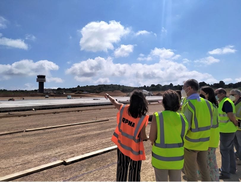 El conseller ha supervisado las obras de construcción de la nueva plataforma industrial y de prolongación de la calle de rodaje. Según ha detallado, la prolongación de la calle de rodaje ya está ejecutada, mientras que la plataforma destinada al mantenimiento de aeronaves estará culminada a final de este mes.