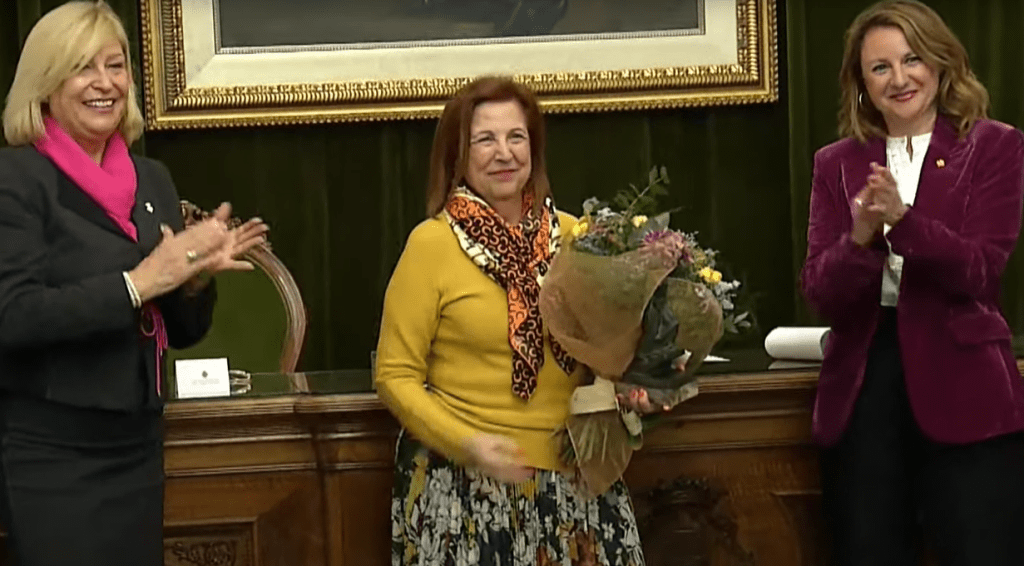 Sindicalista, enfermera y persona comprometida e incansable, la que ha sido referente dentro de CCOO del País Valencià, al convertirse en 1996 en la primera mujer al frente de la secretaria en les Comarques del Nord, ha recibido este reconocimiento entre una contundente y larga ovación de un salón de Plenos repleto de admiración y orgullo de contarse entre sus amigos.
