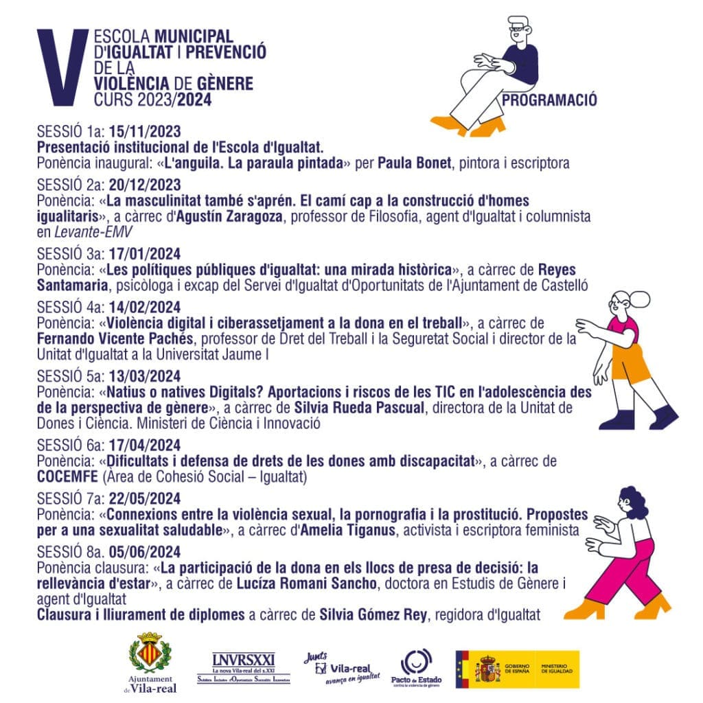 La Escuela de Igualdad contará con un total de ocho sesiones de ponencias y conferencias a cargo de expertos en diferentes materias vinculadas a la igualdad y contra la violencia de género y en esta edición la sesión inaugural correrá a cargo de la ilustradora y escritora vila-realense Paula Bonet.