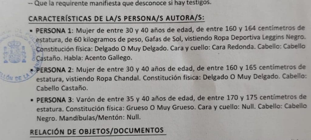 Con todo, y según lo que la mujer recuerda y pudo relatar. Subieron juntas a su domicilio, donde la estafadora revisó todos los cajones y joyeros. Luego la introdujeron en un coche conducido por un hombre, supuestamente compañero de la cómplice en una inmobiliaria.