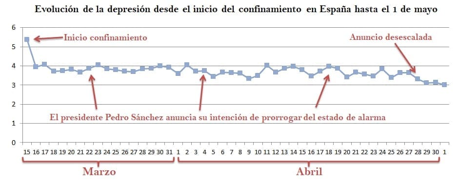 El professor Suso també afirma que una vegada es dóna l‘avís del desconfinament «millora el nostre estat d’ànim. Tristesa i irritabilitat milloren encara que l’angoixa un poc menys». La raó podría ser que «hi ha una part de la població que pot estar preocupada per un possible rebrot, però també trobem ací una resposta en dues direccions. Ja que això també ens pot portar al pensament de ja s’ha acabat i tot això pot trobar un efecte de relaxació que derive en comportaments de risc».