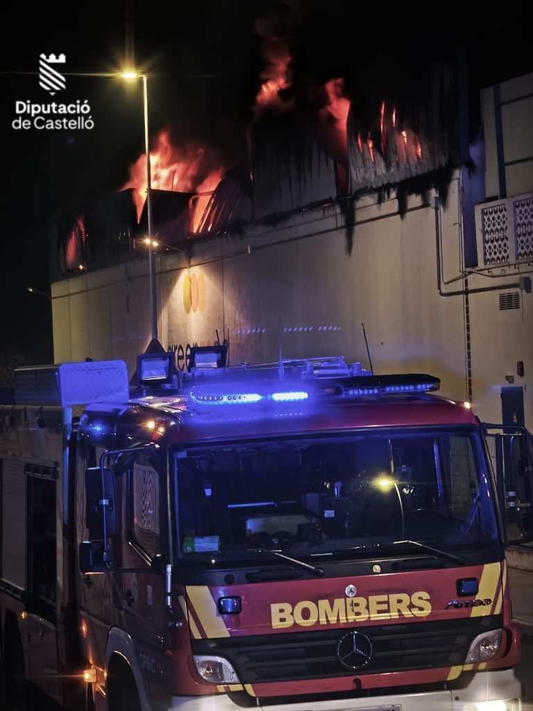 Bomberos han trabajado durante toda la noche en la extinción de dos incendios industriales, uno declarado en un polígono de Castellón de la Plana, que ya ha sido dado por extinguido, y otro en el término de Almassora, controlado durante la madrugada.