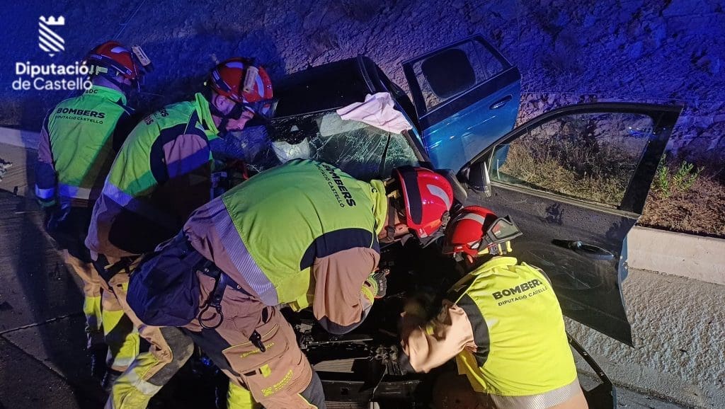 Hasta el lugar del accidente se desplazaron, junto a efectivos sanitarios, agentes del Consorcio Provincial de Castellón procedentes de los parques de Baix Maestrat y Els Ports dado que había dos personas atrapadas que fueron excarceladas por los bomberos.