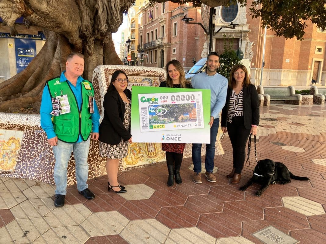 El cupón se ha presentado este jueves en la plaza en la que está ubicado este ejemplar, uno de los más antiguos de la ciudad, con la presencia de la concejala de Bienestar Social, Maica Hurtado, la directora de la Agencia ONCE en Castellón, Jimena Sánchez, un colaborador de la Agencia de la ONCE en Castellón, Manuel Ruiz y otros miembros del grupo social.