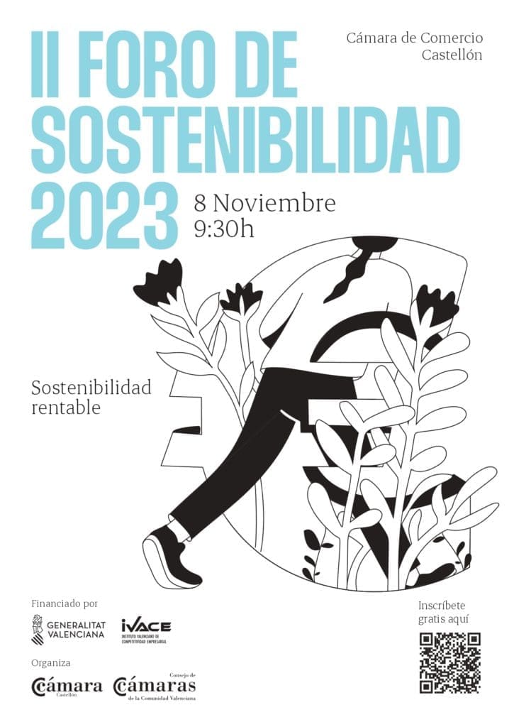 La cita, punto de encuentro para empresas e instituciones de la provincia que quieren poner en valor la sostenibilidad, incorporándola a sus estrategias de desarrollo y sistemas de gestión, y reducir su impacto medioambiental, arranca el miércoles, 8 de noviembre de 2023, con inscripción gratuita, en la Cámara de Comercio de Castellón bajo el lema ‘Sostenibilidad rentable’.