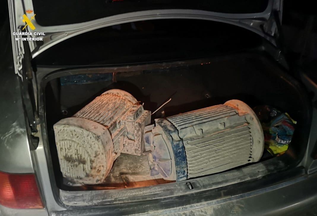 Al llegar al lugar, los guardias civiles encontraron la cadena de acceso rota y sorprendieron a los sospechosos mientras cargaban el material en un vehículo.