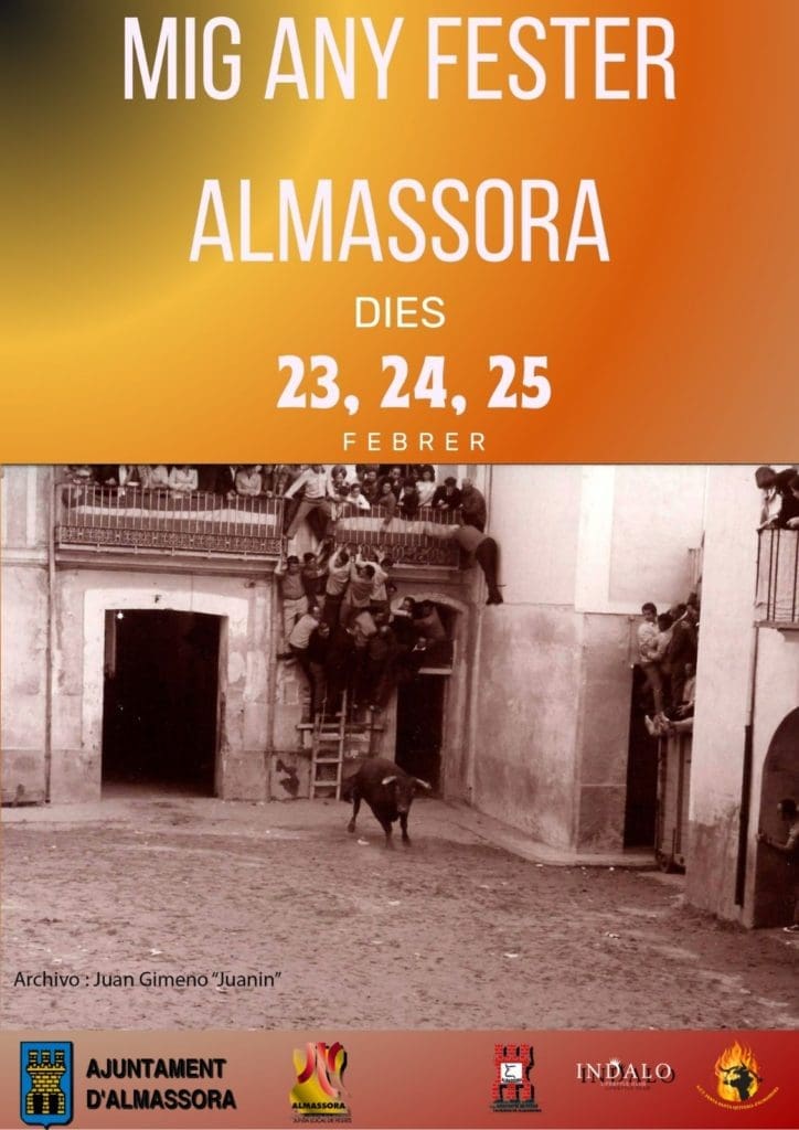 Cuenta atrás para la celebración del Mig Any Fester de Almassora, del 23 al 25 de febrero. La principal novedad de este 2024 es la inclusión en la programación de festejos taurinos con pruebas de vacas, toros embolados y la exhibición de un astado cerril.