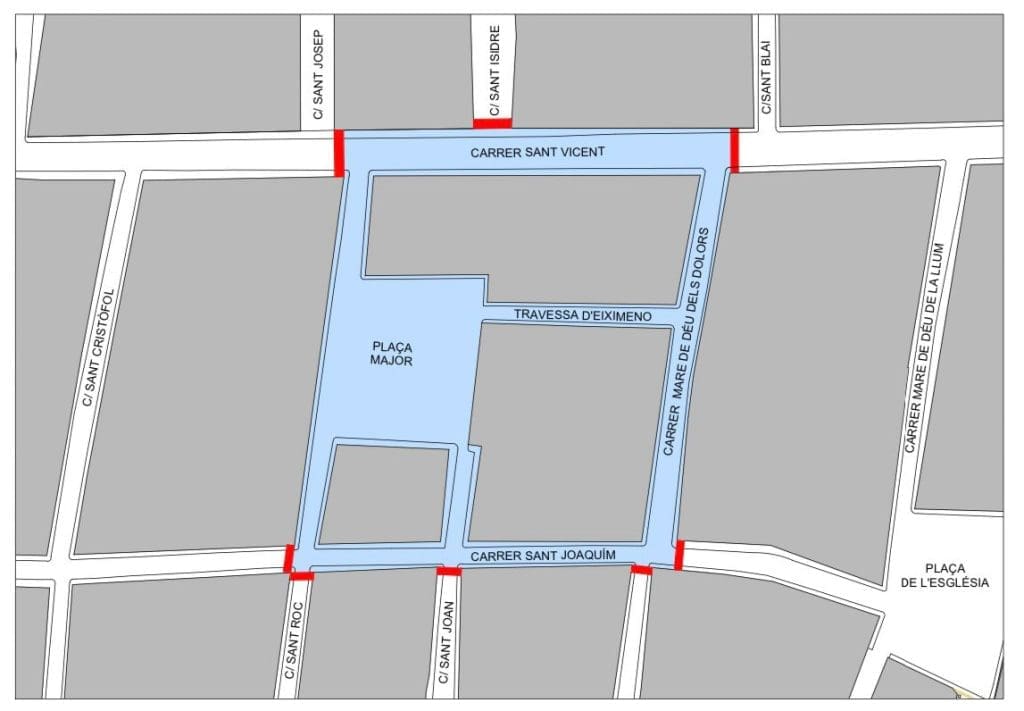 El recinto taurino acotado en la Vila comprenderá la plaza Mayor, Travesía de J. Jimeno, la calle Virgen de los Dolores, la calle Mayor, la calle San Roque,  la calle San Juan y la calle San Joaquín.