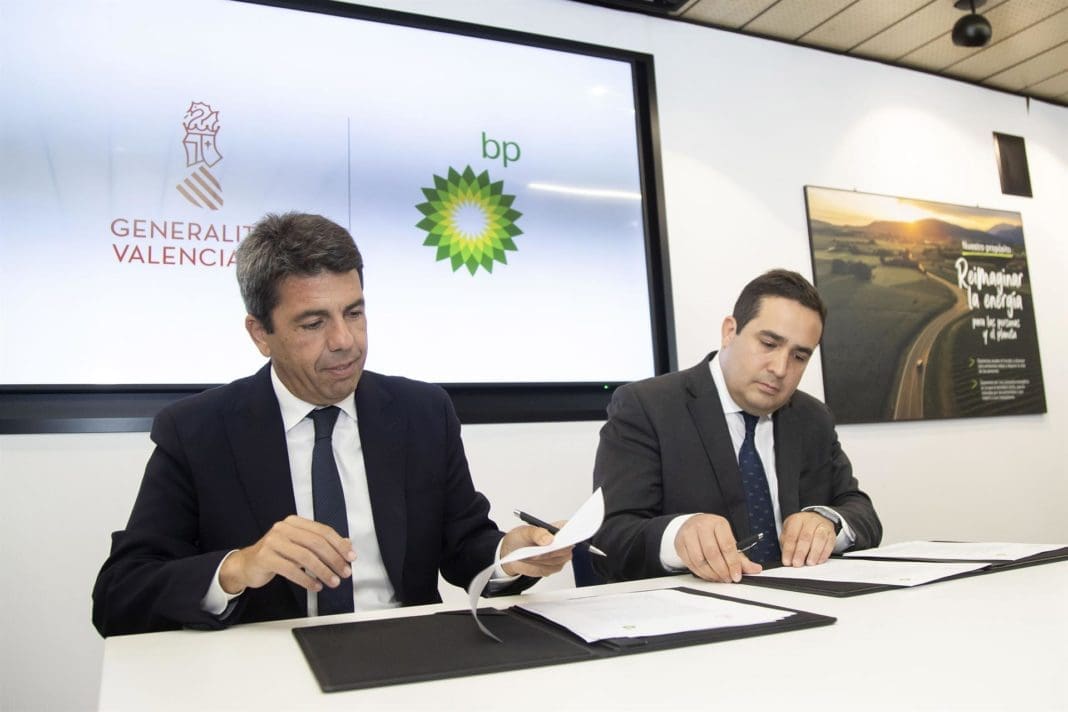 El ‘president’ de la Generalitat, Carlos Mazón, y el presidente de bp, Andrés Guevara, han firmado un acuerdo de intenciones entre el gobierno valenciano y la compañía energética para impulsar un hub de energía integrada en la Comunitat Castelló de la Plana.
