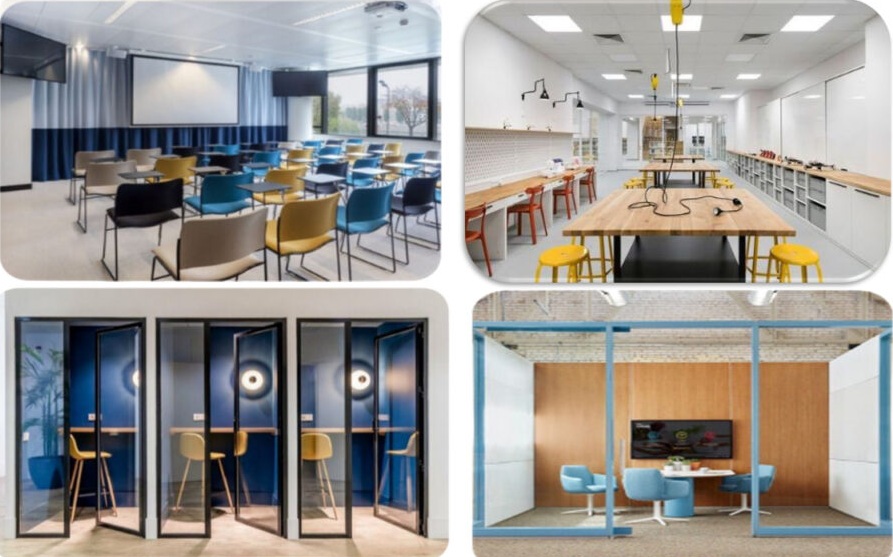 Las instalaciones se dotarán también de salas de formación y capacitación, laboratorios maker, que permitirán a las startups y empresas prototipar productos, así como un estudio de podcast, aislado acústicamente. Asimismo, contempla también áreas de relax, cafetería, cocina office, zonas verdes y espacios al aire libre.