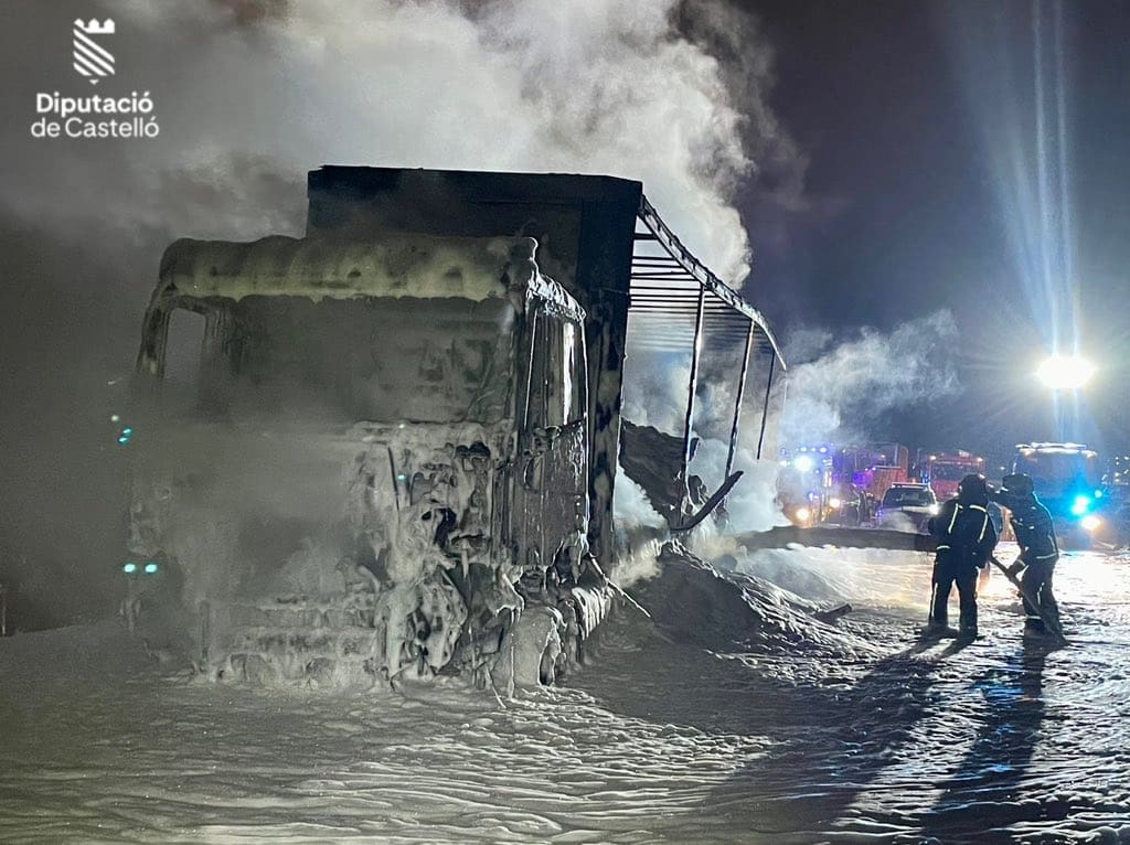 El incendio ha afectado a la totalidad del camión. En las labores de extinción han participado efectivos de los parques de Alto Palancia y Plana Baixa.