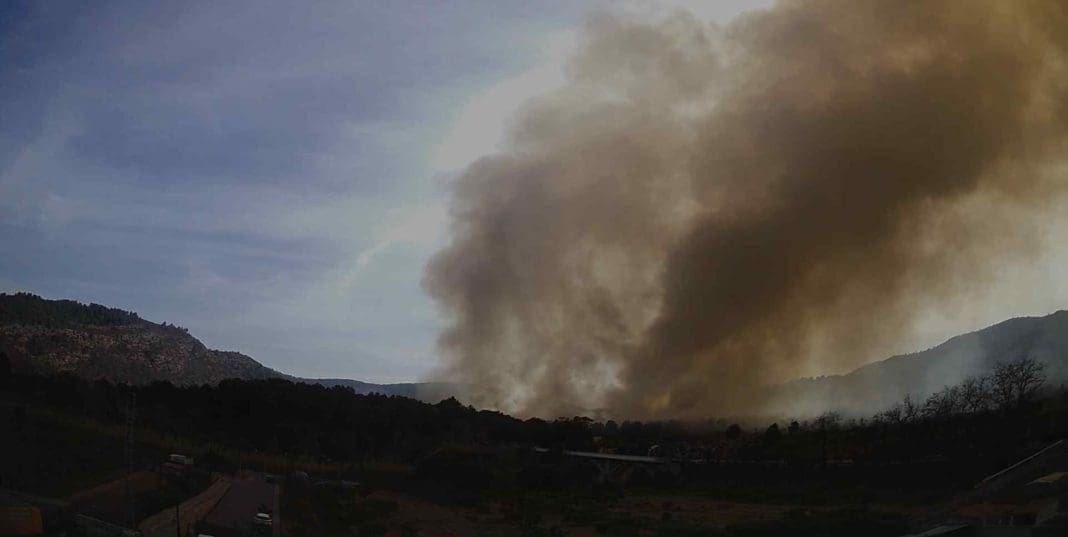 Emergencias de la Generalitat alertaba este domingo por la mañana de un incendio que tiene lugar en en la zona de La Lleuja, Fanzara, junto al rio Mijares. La causa ha sido una quema de cultivo que se ha descontrolado.