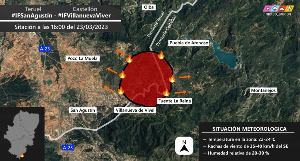 El avance de las llamas del incendio de Villanueva de Viver ha hecho que a las 16:30 el director de la extinción en #IFVillanuevaViver de @BombersDipcas haya solicitado el desalojo de La Puebla de Arenoso, Los Cantos y La Monzona.