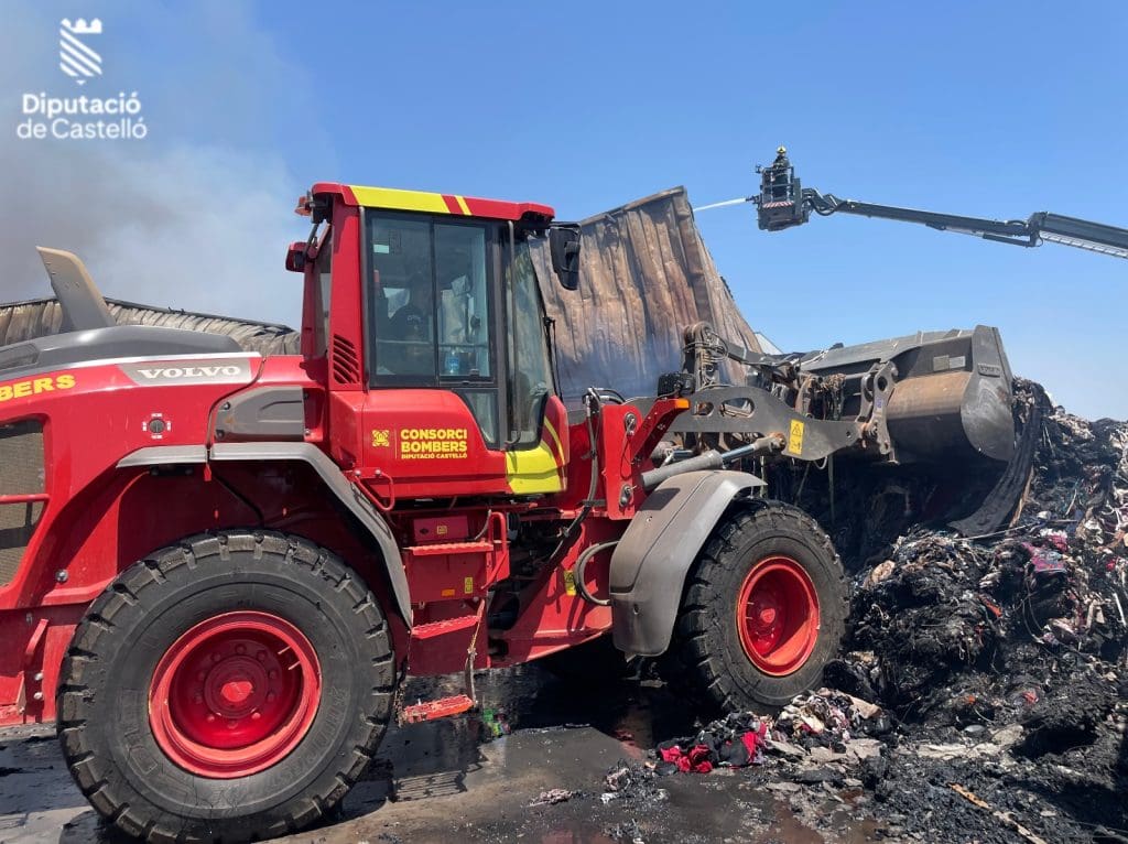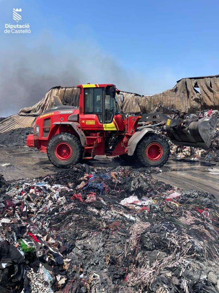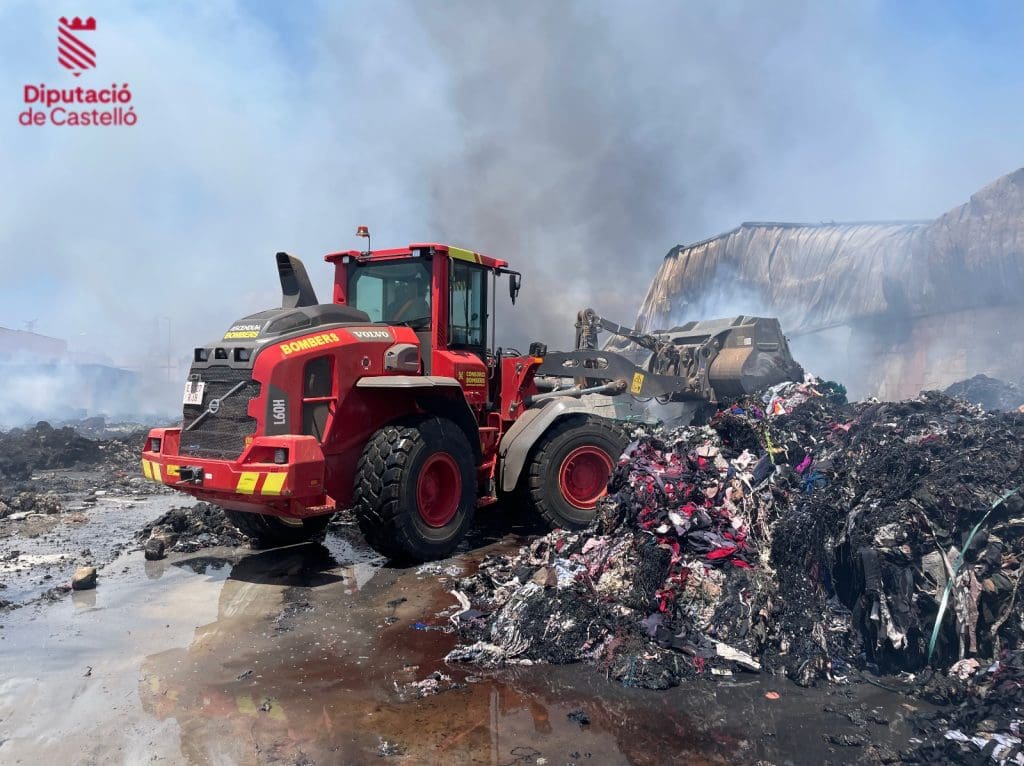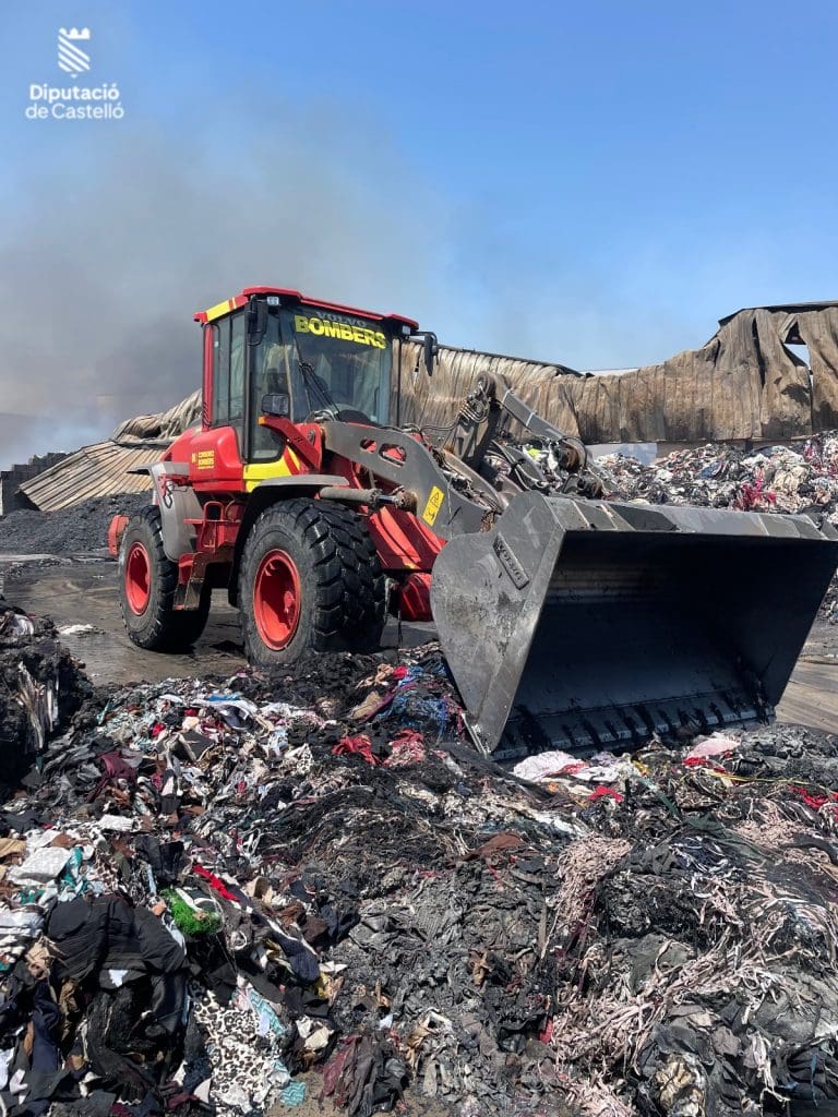 Treinta efectivos del Consorcio Provincial de Bomberos de Castellón seguían trabajando en la tarde del sábado en el incendio declarado este viernes en una nave del polígono industrial Vía Europa de Almassora (Castellón), donde se acumulan grandes cantidades de residuos de material textil, aunque su evolución es «muy favorable».