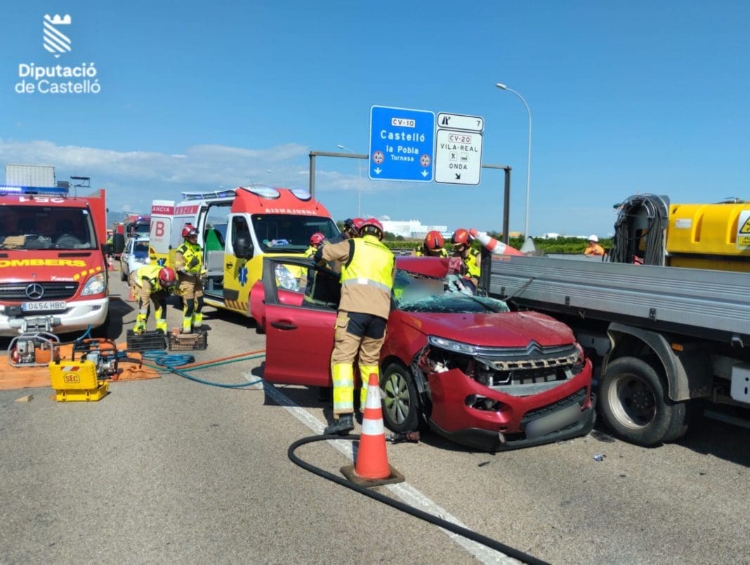 Según fuentes del Consorcio Provincial, los bomberos han excarcelado al conductor del turismo implicado en un accidente de tráfico en la CV-10 en el término municipal de Onda.