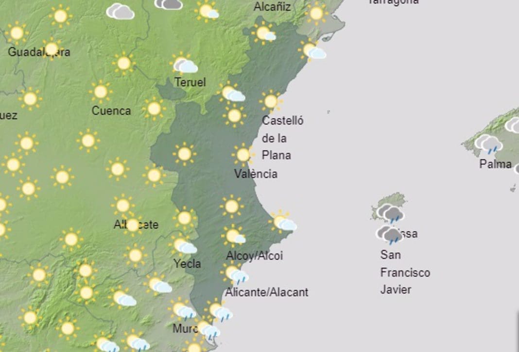 La Comunitat Valenciana vivirá un jueves festivo en el que las temperaturas máximas alcanzarán los 31 grados y con probabilidad de chubascos ocasionales en la provincia de Alicante y el interior de Castellón en la segunda mitad del día, según la predicción de la Agencia Estatal de Meteorología (Aemet).