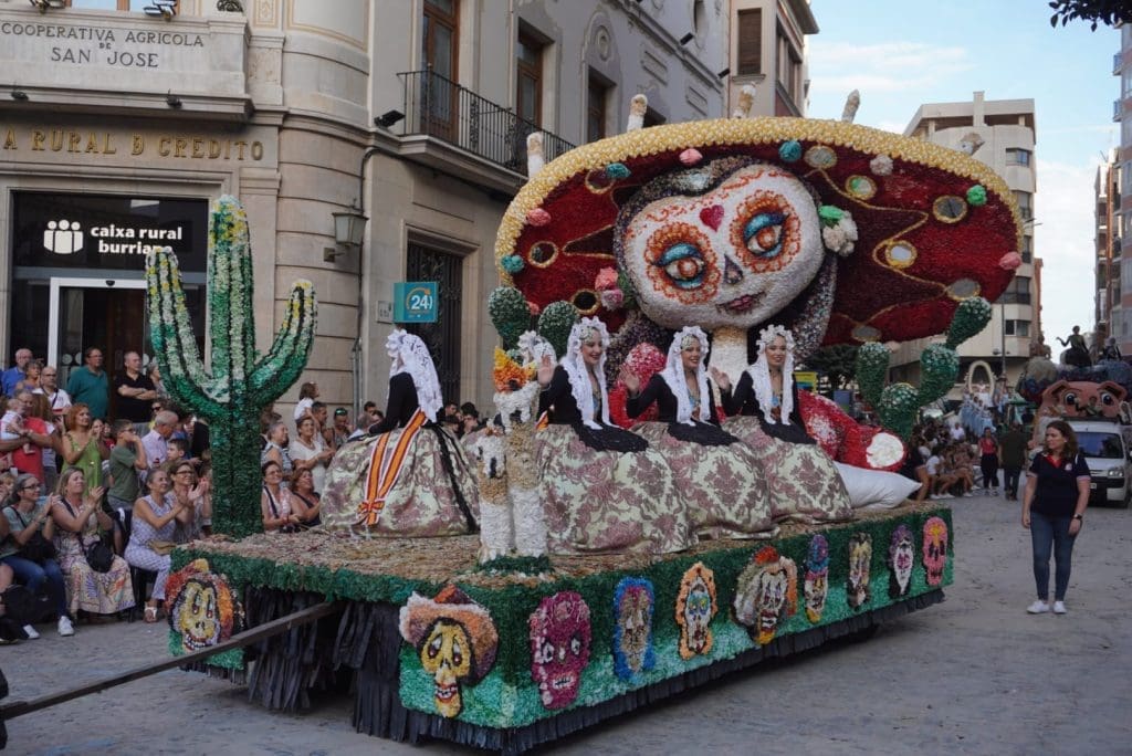 Como ya es tradición, las comisiones falleras han demostrado su habilidad y creatividad al confeccionar sus carrozas de forma artesanal. Utilizando la técnica tradicional del «paperet», dieron vida a estructuras brillantes y coloridas, donde cada detalle, desde los motivos principales hasta los faldones que ocultan las ruedas, fue cuidadosamente creado con papel de seda y cola. La destreza y el ingenio son las únicas herramientas que estas comisiones necesitan para brindar un espectáculo visual inolvidable año tras año.