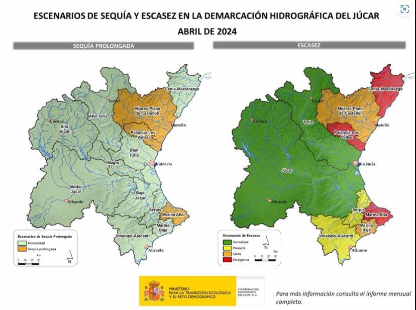 Así mismo, ha confirmado que los sistemas Palancia-Los Valles, Cenia-Maestrazgo y Marina Alta continúan en situación de emergencia por escasez.