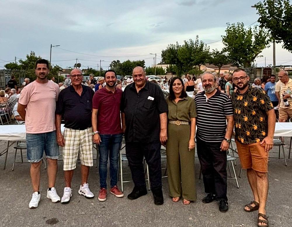 La teniente de alcalde del Grao, Ester Giner, acompañada por el primer teniente de alcalde y concejal de Urbanismo, Sergio Toledo, y el concejal de Salud Pública, Luciano Ferrer, además de otros concejales, ha participado en la cena que los vecinos de la Marjalería han celebrado hoy con motivo de sus fiestas de verano.