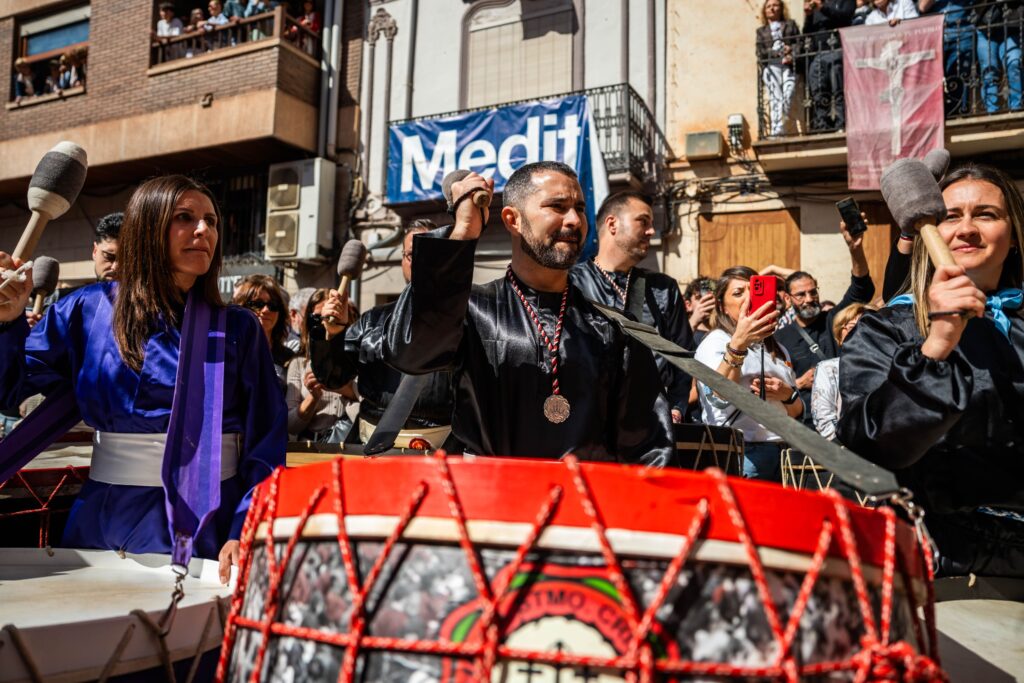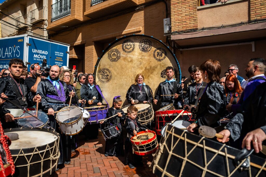 La edición de este año ha estado marcada por el profundo respeto y el cariño hacia la figura de Melchor Paús, nombrado Rompedor de Honor a título póstumo. Paús, quien fuera presidente de la Hermandad del Santísimo Cristo del Calvario y una figura clave en el impulso de este evento, ha sido recordado en un gesto lleno de simbolismo: ha sido su mujer, Lucía Branchat -también con una larga trayectoria vinculada al mundo del tambor-, la encargada de romper la hora. Sus primeros toques han desatado el estruendo colectivo, un momento de gran intensidad que ha unido a todo el pueblo y a los participantes en un homenaje unánime a su memoria.