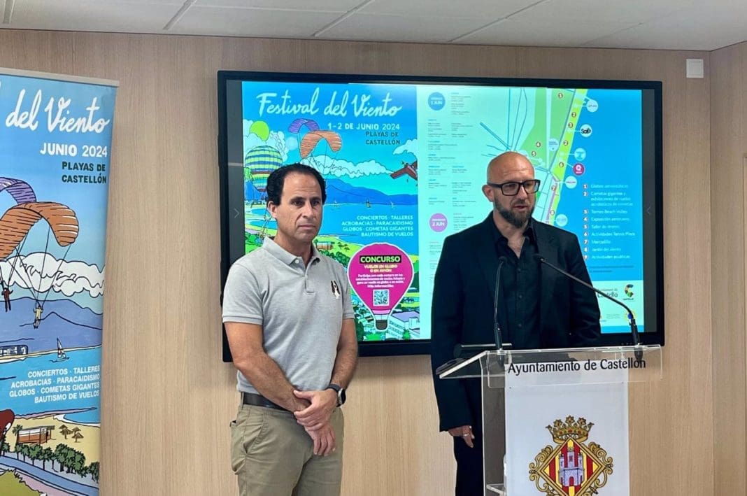 Enrico Grossi, presidente de la Asociación de Empresarios y Entidades Deportivas Playas de Castellón (Adepla), y Yuri Rabassa, presidente del Aeroclub de Castellón, han presentado en rueda de prensa los últimos detalles de la cita, «que promete dos días repletos de color, deporte y emoción en las playas del Pinar, Gurugú y Serradal».