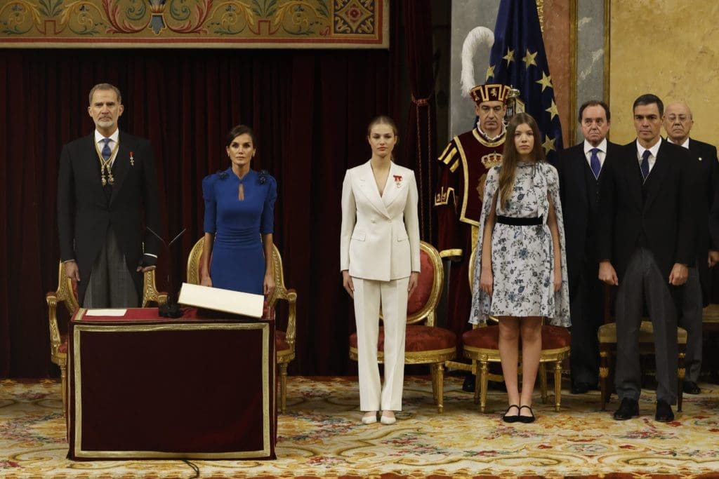 Ante la mirada de sus Majestades los Reyes, su hermana la Infanta Sofía, el presidente del Gobierno, Pedro Sánchez; la presidente del Congreso, Francina Armengol; y diversas autoridades presentes, la Princesa Leonor ha realizado el juramento sobre el mismo ejemplar en que lo hizo su padre hace 37 años, al que se le ha añadido un encarte de las reformas de los artículos 13 y 135, las únicas aprobadas hasta ahora.