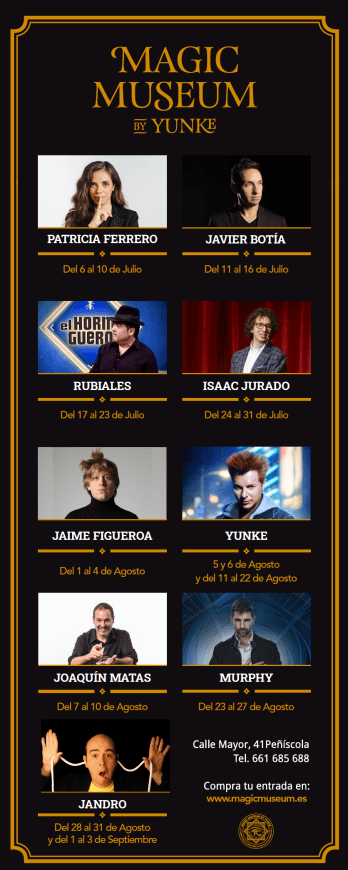 El Magic Museum by Yunke es una atracción muy esperada en el costero pueblo de Peñíscola. «Diseñado para asombrar a los visitantes con su encanto y misterio, el museo ofrece una experiencia inolvidable a quienes deseen descubrir los secretos detrás de los trucos de magia más impresionantes».