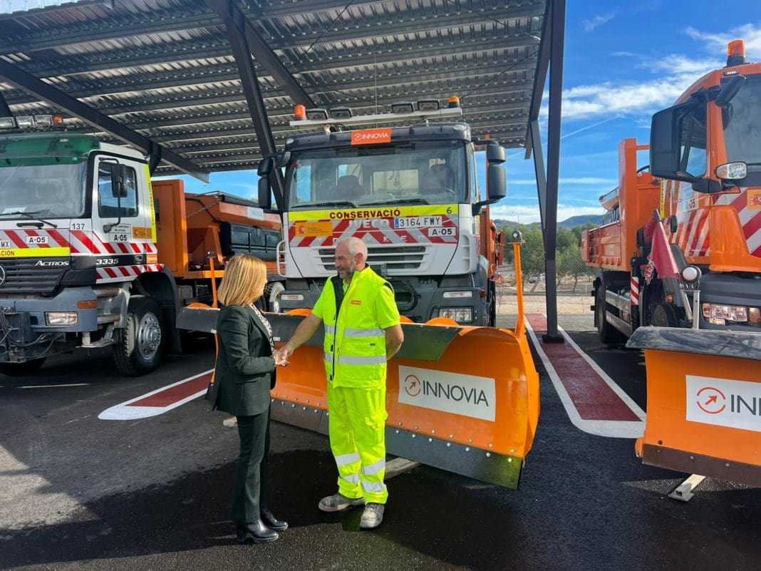 La delegada del Gobierno en la Comunitat Valenciana, Pilar Bernabé, ha presentado en el Centro de Conservación de Carreteras de Castalla, el plan de vialidad invernal 2023-2024.