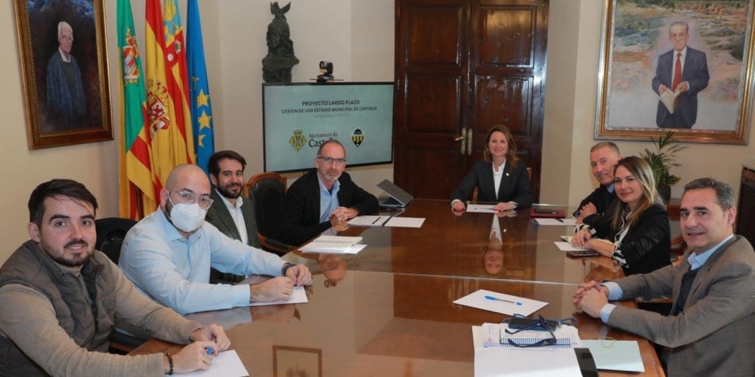 La alcaldesa, Begoña Carrasco, junto a la concejala de Deportes, Maica Hurtado, ha mantenido una reunión este martes con el CEO de Negocios del Club Deportivo Castellón, Robin Taylor, Willy Fente, el jefe de Finanzas, Alberto González, jefe de Asuntos Legales y Cumplimiento y Jordi Porcar, jefe de Estadio e Instalaciones para activar la mesa de trabajo con el fin de avanzar en el convenio de cesión de uso de instalaciones de Castalia.
