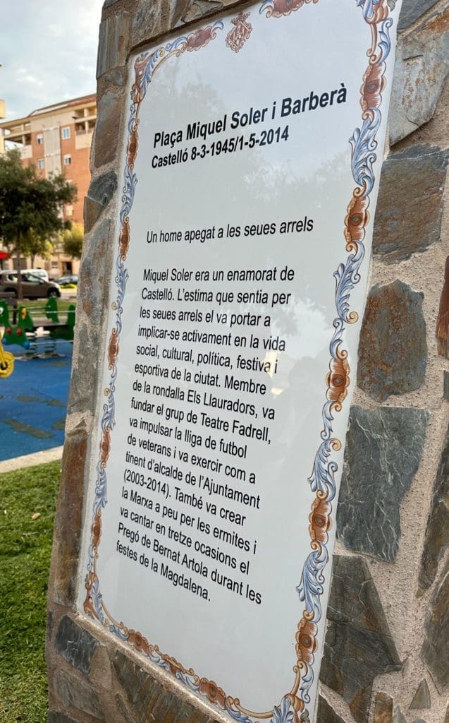 “Hoy es un día muy especial para todos aquellos que tuvimos la suerte de conocer a Miquel Soler Barberá, sin importar si fueron compañeros de corporación, del partido por el que fue concejal, de la rondalla Els Llauradors, del món de la festa, del carrer Sant Blai, del CD Castellón y de tantos y tantos pilares que sostienen esta ciudad. Él fue un pilar de esta comunidad”, ha expresado la alcaldesa en el acto de inauguración del monolito.